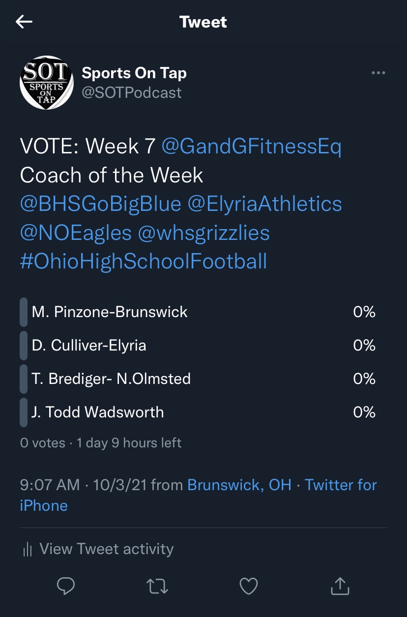 Polls are up on our Twitter page for you to vote for the G and G Fitness Coach of the Week and the RRT Productions Player of the Week for week 7.