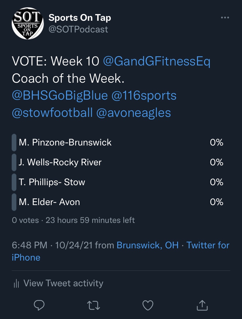 Polls are open on our Twitter page, @SOTPodcast, for you to cast your vote for the Week 10 Coach and Player of the Week award.