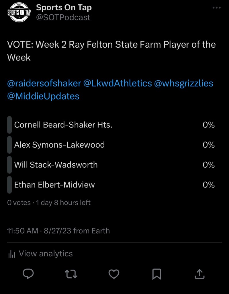 Polls are now open on X so make sure you vote on the Week 2 Ray Felton State Farm Player of the Week.