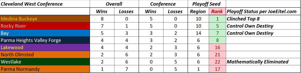 The top 12 teams per region qualify for the playoffs, with seeds 5 through 8 hosting seeds 9 through 12 in the first round. The top four seeds earn a bye to the regional quarterfinals.