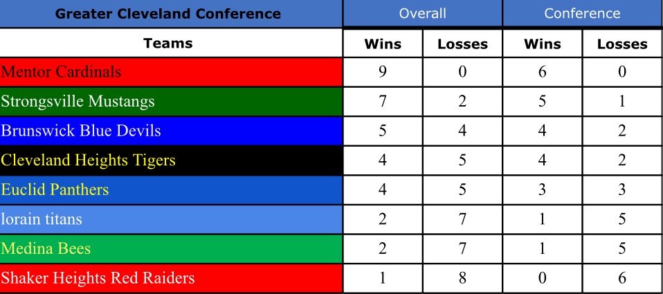 Greater Cleveland Conference Standings Through Week 9 October 17, 2025 sportsontappodcast Uncategorized Share this: Click to share on X (Opens in new window) X Click to share on Facebook (Opens in new window) Facebook Like Loading... Related