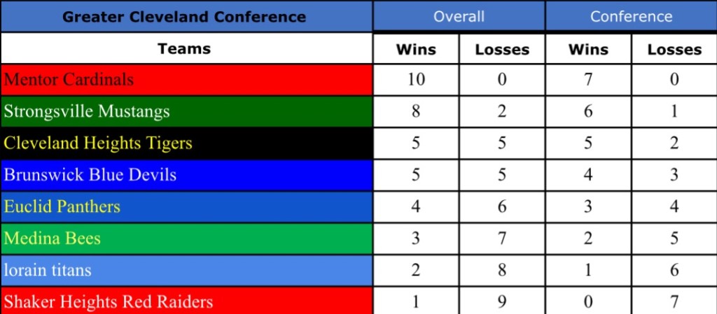 Greater Cleveland Conference 2025 Final Standings October 25, 2025 sportsontappodcast Uncategorized Share this: Click to share on X (Opens in new window) X Click to share on Facebook (Opens in new window) Facebook Like Loading... Related