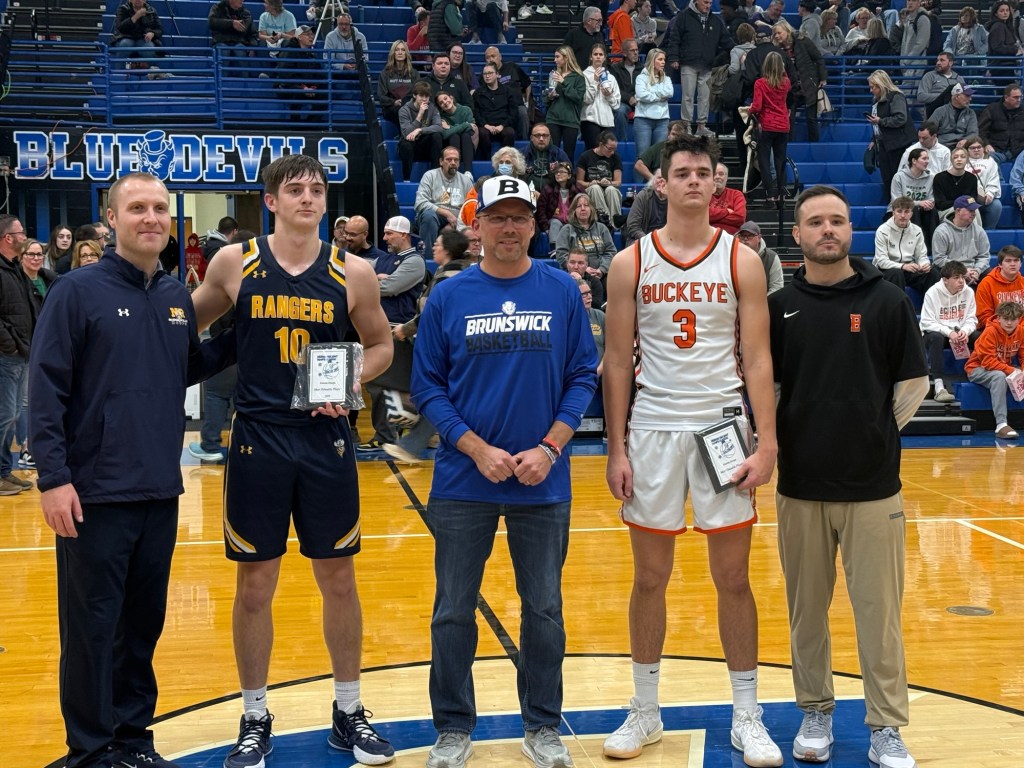 After the game SOT’S Noah Jacobson talked with North Ridgeville Rangers Boys Basketball Head Coach Ben Chase, Cole Miller and Luke Rowe